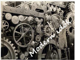 A Modern idők leghíresebb jelenetében Chaplin, a gyári munkás beleőrül az idegtépő feladatába, és magába szippantja a gép.